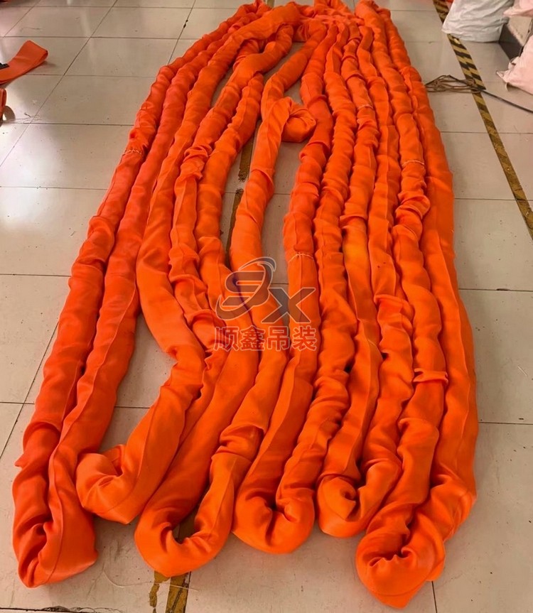 環(huán)形起重吊帶選用合成纖維為原料,采用織造設(shè)備和工藝加工而成。常用的主要是環(huán)形柔性吊帶和兩頭扣柔性吊帶。吊帶的承載芯由無(wú)極環(huán)繞平行排列的多股集束強(qiáng)力紗而組成的閉合承載芯。圓形柔性吊帶彈性伸長(zhǎng)較小,延伸率小于3%。使用溫度范圍-40℃-100℃。生產(chǎn)范圍:0.5t-1000t,安全系數(shù)為4-8倍。具有重量輕、承載力強(qiáng)、柔軟、不導(dǎo)電等特點(diǎn)。